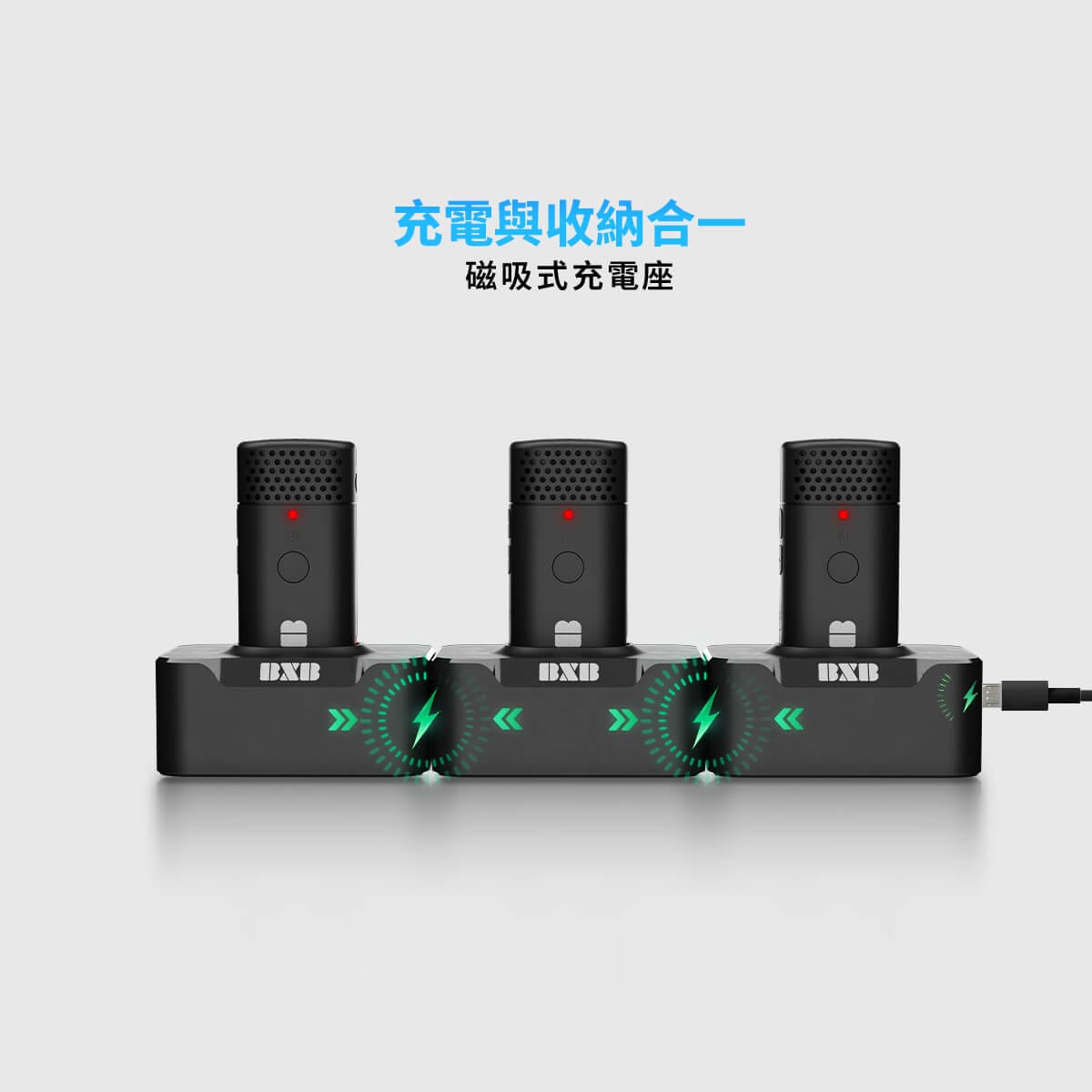 獨家 Type-C 磁吸式充電座,一次最多可連接三台充電座,同時為三支麥克風充電。只需輕放即自動對準,不用擔心插錯或接觸不良。擺在講桌上不僅整潔美觀,也能成為麥克風的固定收納位置,讓設備收取、維護與充電一氣呵成,省時又直覺。