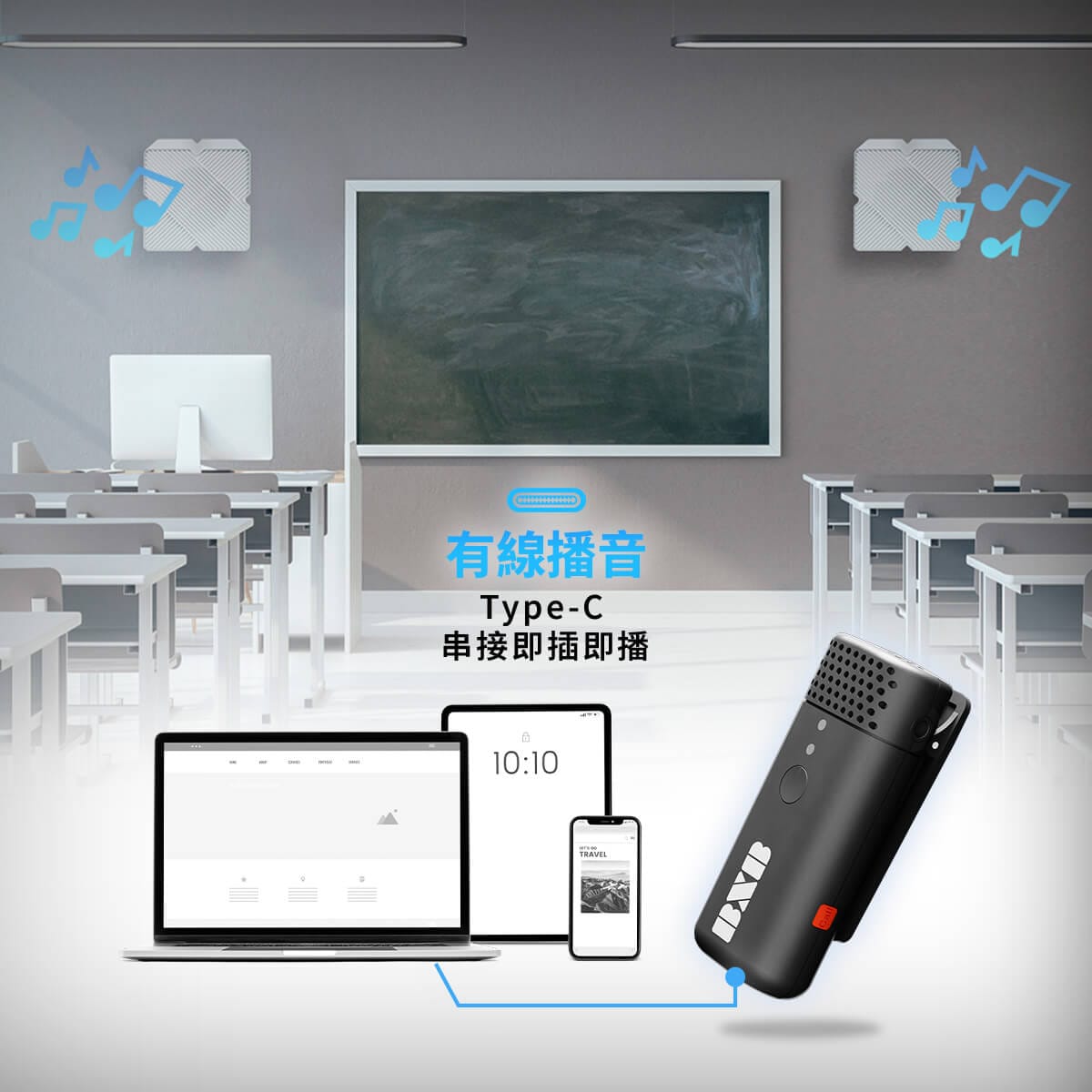 DECT 無線麥克風不只無線好用,更支援 Type-C 有線連接,只要接上手機或電腦,即可將音源直接輸出至教室喇叭,免藍牙、不怕干擾。播放音樂、影片講解都更穩定,特別適合多媒體教學、外籍教師課程或臨時簡報使用,讓教學更靈活、更安心。