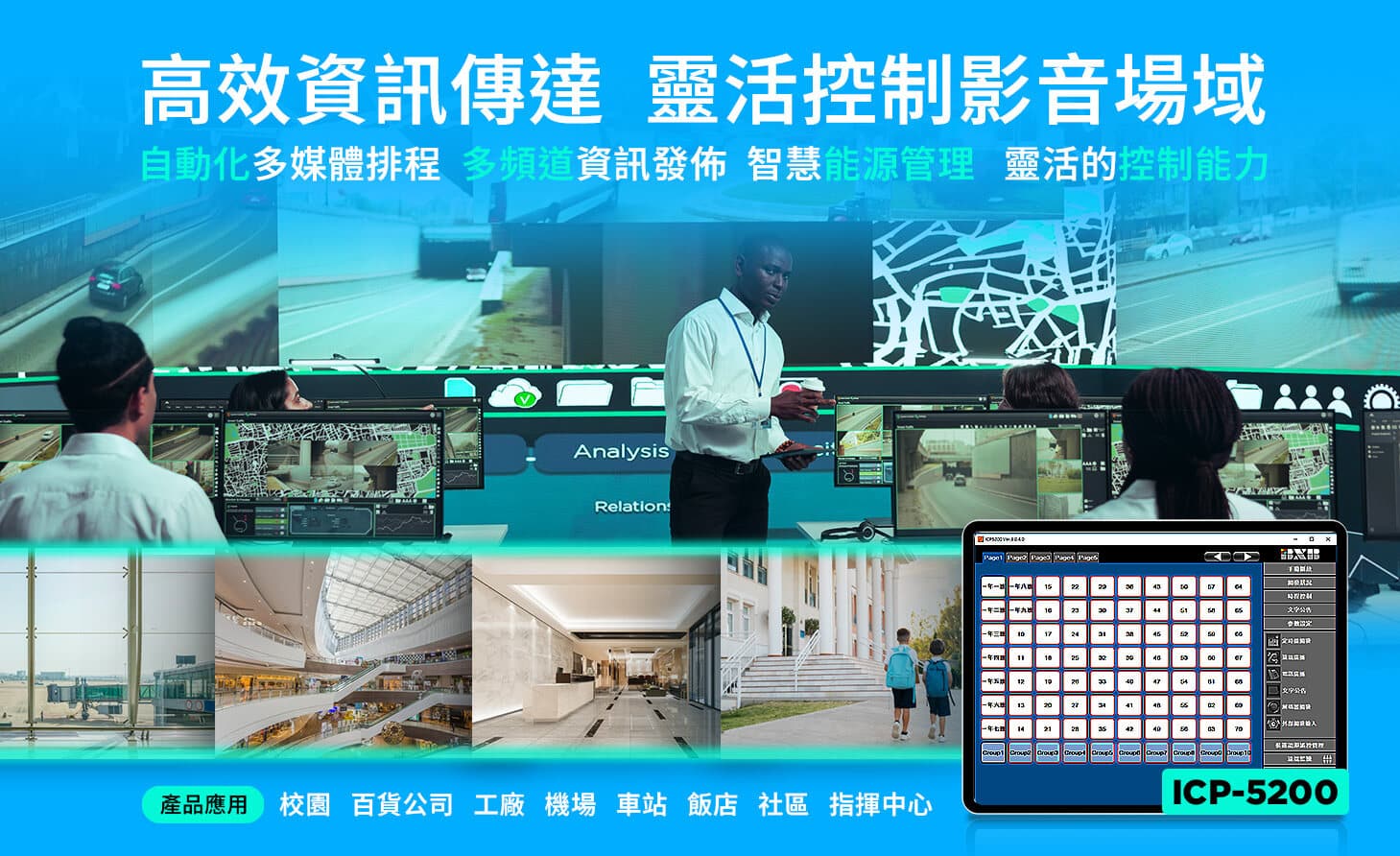 ICP-5200支持自動化多媒體排程、多頻道資訊傳達和靈活控制多區域,利用TCP/IP通訊進行遠程影音傳輸和設備控制。在緊急情況下,該系統能迅速發布緊急資訊,確保在關鍵時刻,您能夠迅速傳遞重要資訊,保障每一個人的安全。選擇ICP-5200,為您的場域提供高效、靈活和智能化的廣播解決方案。