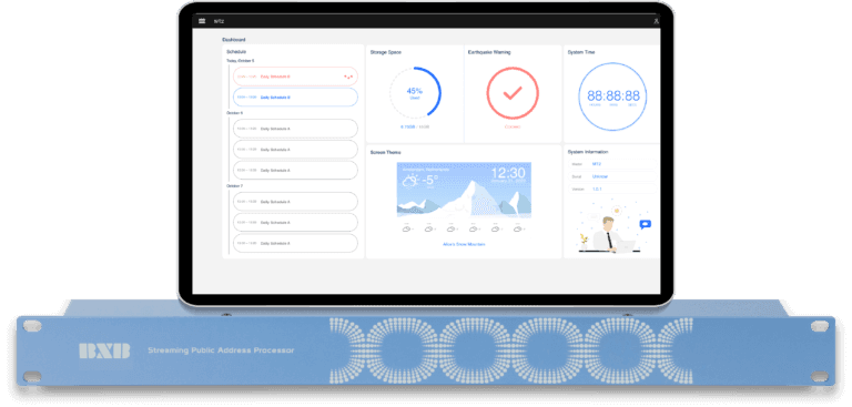 透過電腦及行動裝置的 Web 介面進行操作設定,包括預錄廣播檔、廣播前後奏提示音設定、使用者權限管理等多項實用功能。不需駐守控制室,實現無疆界的廣播與控制
